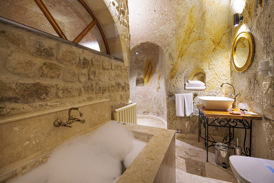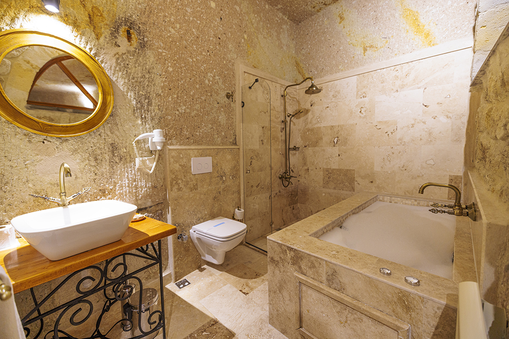 One of the key features of our Deluxe Cave Rooms is the exquisite jacuzzi, a perfect spot to relax and rejuvenate after a day of exploring the wonders of Cappadocia. The soothing ambiance of the cave, combined with the luxury of the jacuzzi, creates a serene sanctuary that caters to the comfort and relaxation of our guests.
