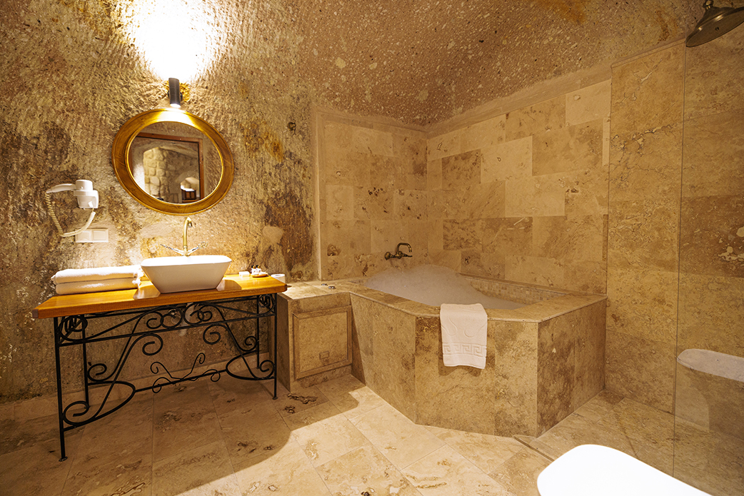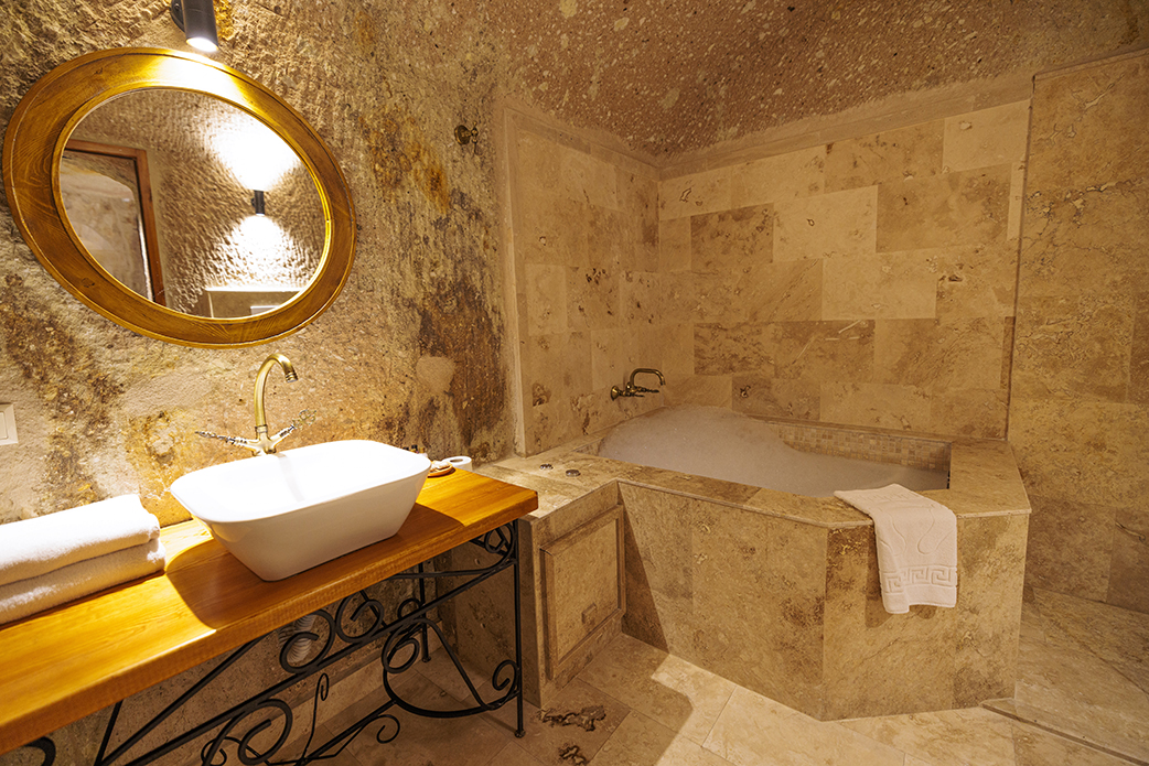 One of the key features of our Deluxe Cave Rooms is the exquisite jacuzzi, a perfect spot to relax and rejuvenate after a day of exploring the wonders of Cappadocia. The soothing ambiance of the cave, combined with the luxury of the jacuzzi, creates a serene sanctuary that caters to the comfort and relaxation of our guests.