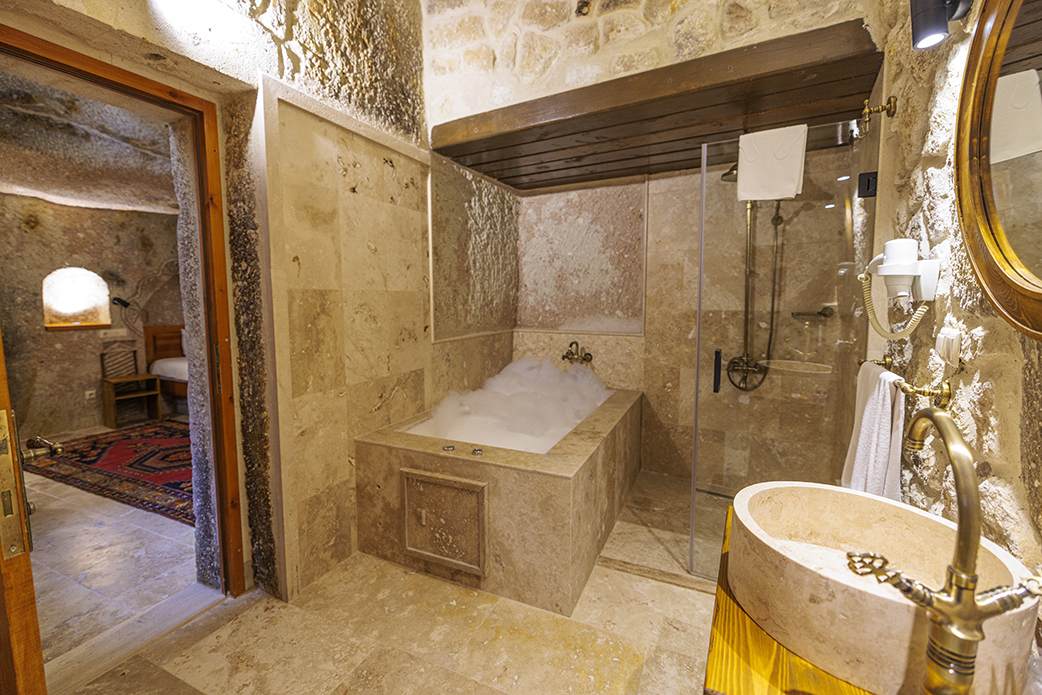 One of the key features of our Deluxe Cave Rooms is the exquisite jacuzzi, a perfect spot to relax and rejuvenate after a day of exploring the wonders of Cappadocia. The soothing ambiance of the cave, combined with the luxury of the jacuzzi, creates a serene sanctuary that caters to the comfort and relaxation of our guests.